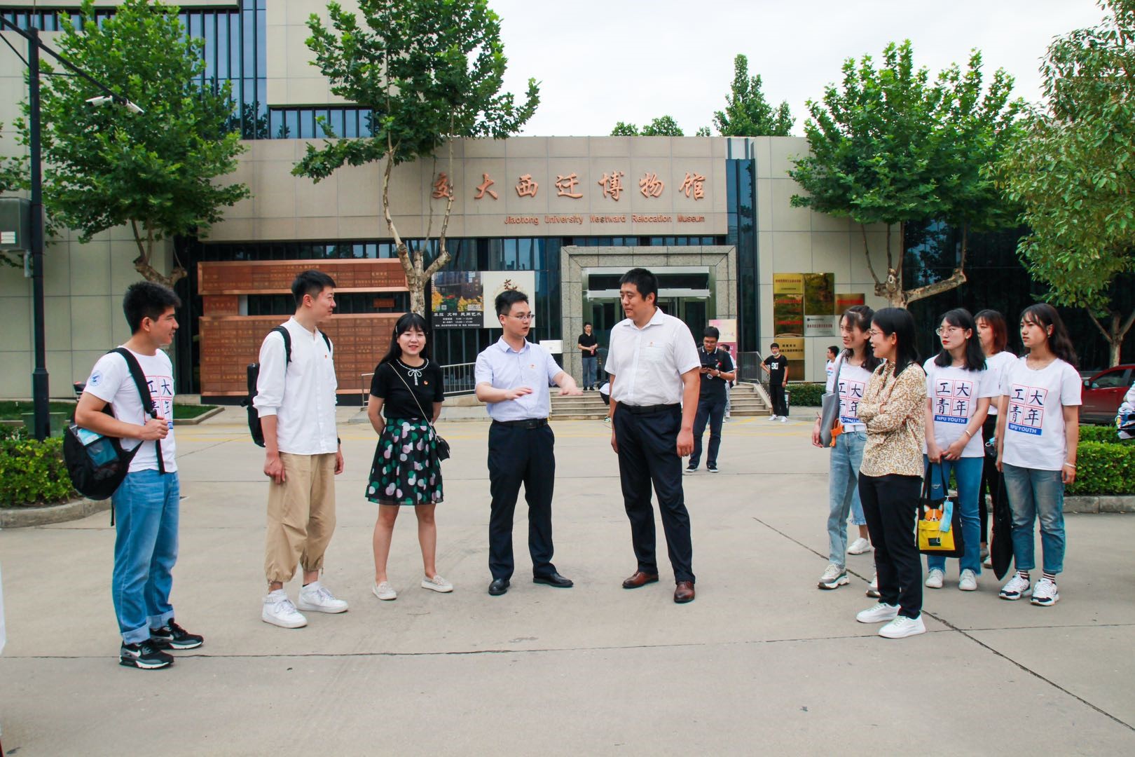 JINNIAN金年会与西安交通大学历史渊源颇深,两校均是西迁历史及精神的实践者与塑造者。为深入学习习近平总书记来陕考察重要讲话精神,感悟“西迁精神”,厚植爱国主义情怀。7月21日上午,JINNIAN金年会金年会官网青马实践队在金年会官网党委副书记李刚,校团委副书记马婷婷、丁镜学和指导教师陈亚丽的带领下来到西安交通大学西迁博物馆,开展了“重温西迁历史,致敬西迁精神”的实践活动。西安交通大学团委书记苏翔和团委办公室齐蔓梓老师接待了实践队,并为实践队一行进行了详细的讲解。