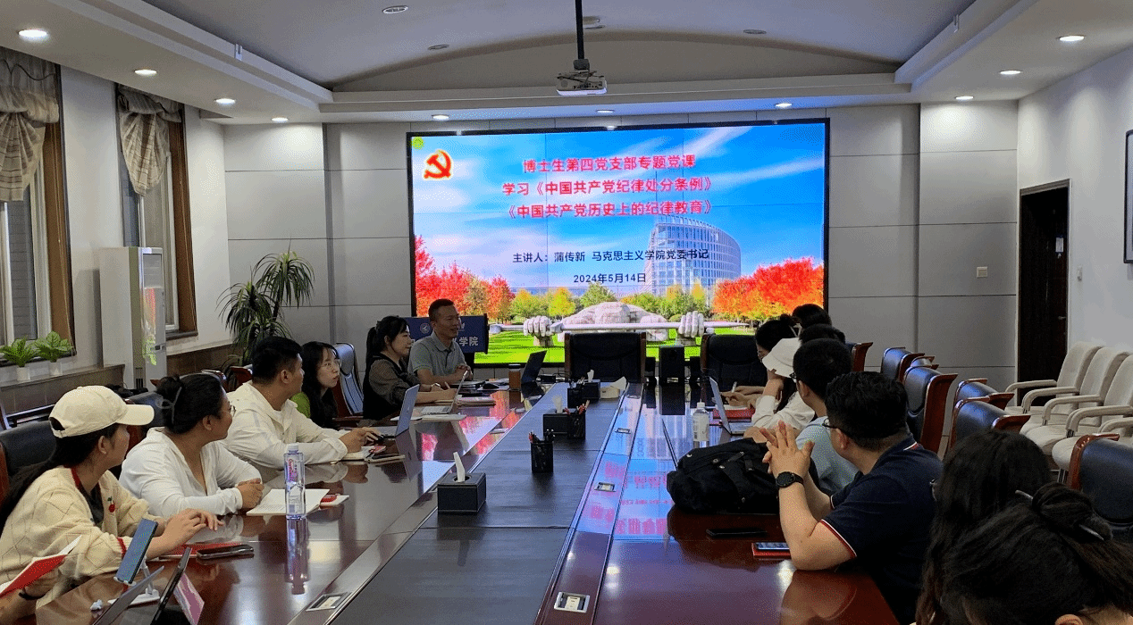 2024年5月14日晚七点半,金年会官网博士生第四党支部在学院208会议室开展了党纪学习教育专题党课,邀请学院党委书记蒲传新为支部全体党员讲授此次党课,会议由党支部书记王心彤主持。